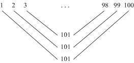 Back in the late 18th century, a German school teacher assigned his room full of young students an assignment: "Add up the integers from 1 to 100." It was intended as busy work - something to keep them quiet for a little while. After just a few seconds, one of his students, young Carl Friedrich Gauss raised his hand with the answer. Ten year old Carl, who would one day become of history's most famous mathematicians had seen a pattern. If you write the numbers in order and add together the first and last number, the result is 1 + 100 = 101. If you take the second number and the second to the last and add them together, the result is 2 + 99 = 101.