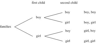 Throughout this chapter, many of the solutions are going to start off with the question, "What choices do I have to make?" or "How can an event occur?" For example, if I told you that a couple had two children and asked you to make a tree diagram to represent the possible boy/girl combinations you would be looking at events rather than choices. For example, the first branch would be the two possible results of the first birth: either the baby is a boy or the baby is a girl.